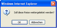 Bestätigen Sie die Weiterleitung mit der Schaltfläche OK, wenn die Reise weitergeleitet werden soll.